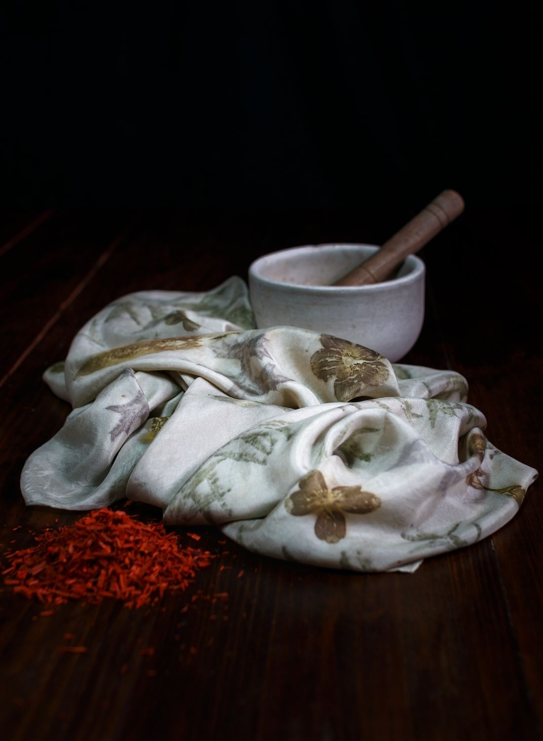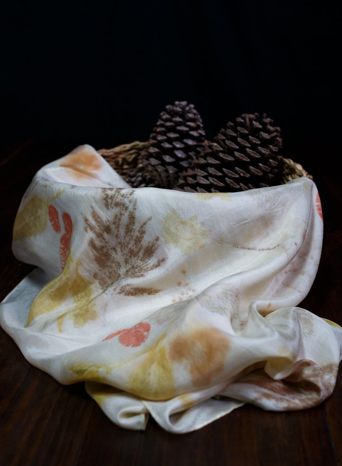 Foulard de seda con estampado de ecoprint 55cm