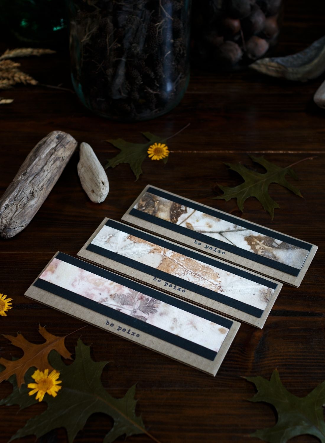 Estos marcapáginas están elaborados con flores recolectadas una a una.